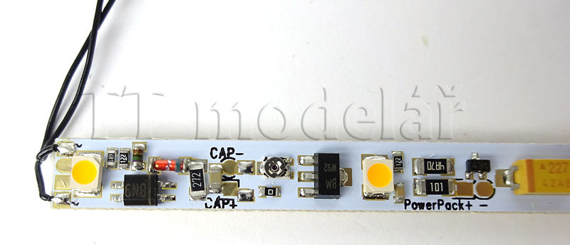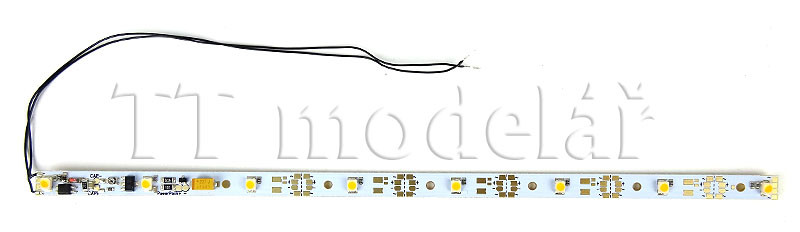 Nová praktická univerzální stavebnice vnitřního osvětlení pro vozy Tillig vyrobená v kooperaci s firmou Viessmann. Osvětluje interiér vozů pomocí teple bílých LED, přičemž diodový proužek je možno libovolně zkrátit dle typu vozu. Je použitelná jak v analogovém, tak v digitálním provozu od 6 V až do napětí 24 V ss/stř. Dá se použít u všech vozů, připravených pro montáž vnitřního osvětlení. Nahrazuje všechny dříve dodávané stavebnice osvětlení. Svit lze seřídit pomocí miniaturního potenciometru. Nezkrácený proužek má proudovou náročnost cca 25 mA. Připojuje se pomocí dlouhého tenkého vodiče, který je možno zkrátit dle potřeby. Na pájecích bodech lze napojit koncové osvětlení vlaku.