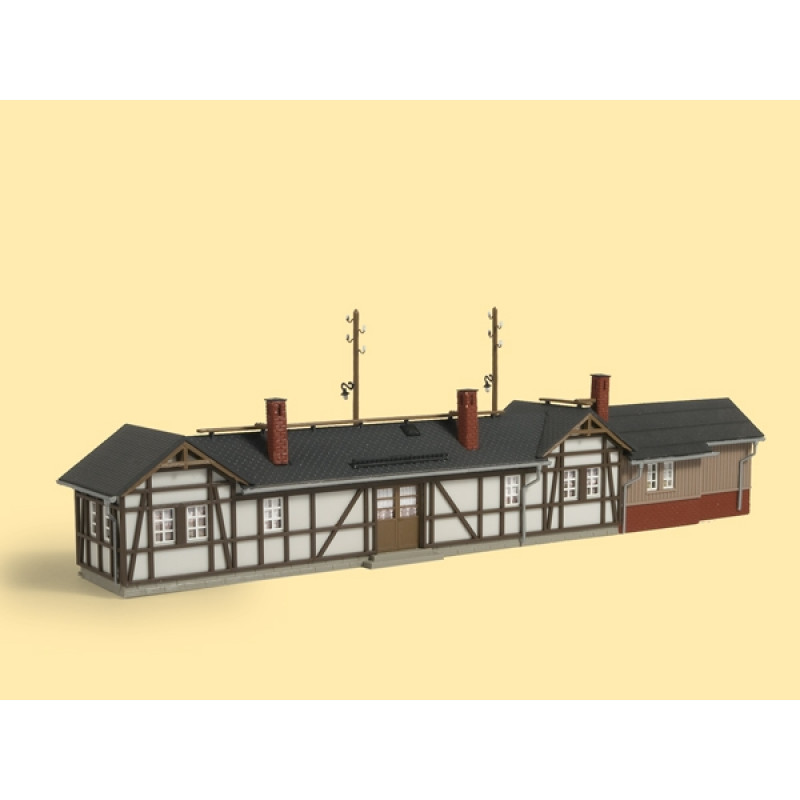 Budova Postavená v roce 1935 stojí na trati Elster Gera-Greiz-Plauen / Vogtland) -Weischlitz - Elstertalbrücke. Jedná se o památkově chráněný objekt. Tato trať měla po druhé světové válce velký význam pro nákladní dopravu, neboť města na řece Elster Weisse byla průmyslově důležitá. Kromě toho tudy jezdily dálkové vlaky do Československa. Sloupy s lampami, stojan s klikami, hodiny a koš na odpadky jsou přibaleny. Model je bez nástupiště.