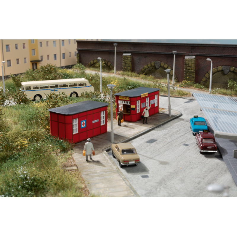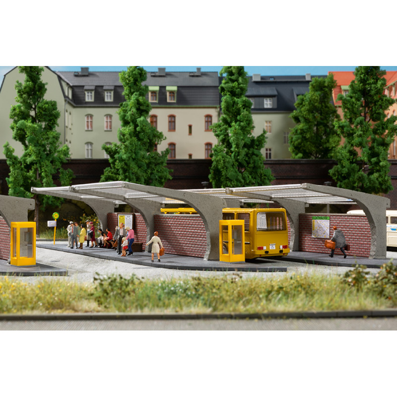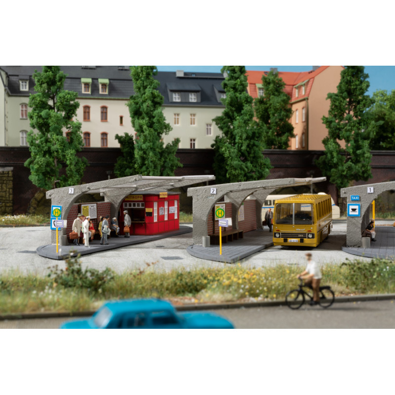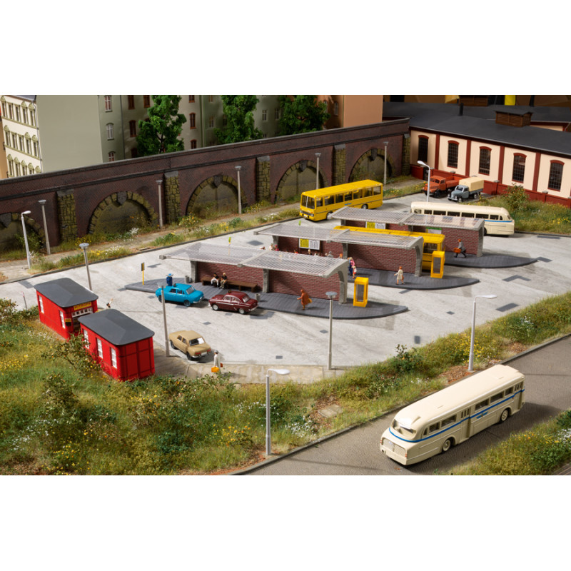 v 60. a 70. letech vlivem rychlého rozvoje autobusové dopravy. Díky svému modernímu designu se model hodí i do epochy současných modelů železnic. Ze stavebnice lze postavit tři nástupiště, dvě pro autobus a jedno pro taxíky. Moderní střešní konstrukce ze skla poskytuje ochranu před deštěm. Ve dvou malých budovách je umístěn prodej jízdenek, toaleta a také občerstvení. Pro vybavení jsou
