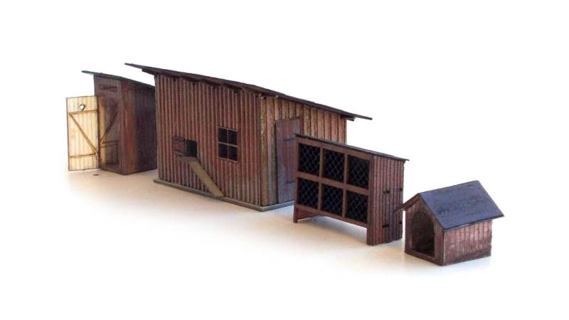 Set doplňkových staveb, kurník, záchodek, králikárna a psí bouda, TT, KB Model 4208