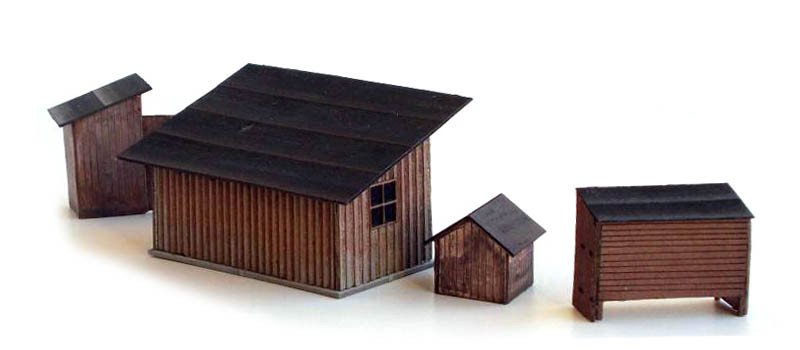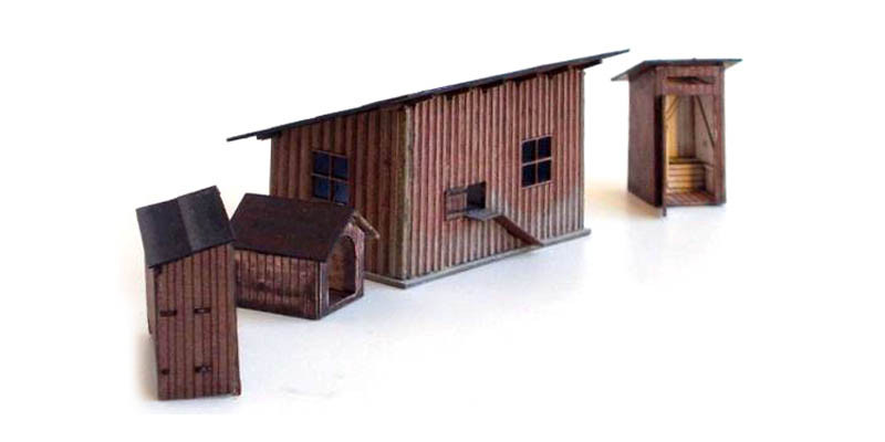 Set doplňkových staveb, kurník, záchodek, králikárna a psí bouda, TT, KB Model 4208 Set doplňkových staveb, kurník, záchodek, králikárna a psí bouda, TT, KB Model 4208