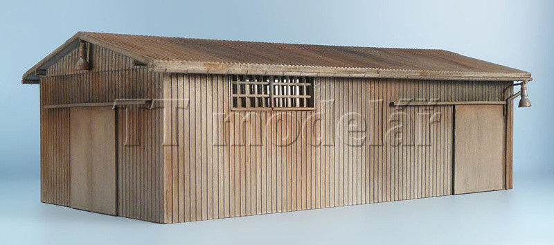 Plastové desky - stěny se spárami zakrytými lištami jsou vhodné pro modelování dřevěných staveb a dalších předloh. Zároveň je možné použít desky i pro imitaci plechových stěn. Obrázky ukazují obojí využití pomocí desky kat. č. 4542.