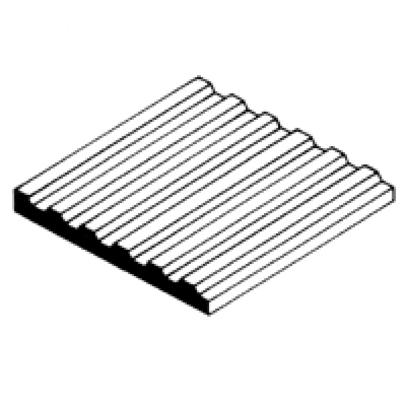 Plastové desky s tvarovými drážkami vhodné pro modelování plechových střech a dalších podobných ploch. Deska má lichoběžníkové drážky - tyto jsou symetrické (tj. prohlubeň má stejné rozměry jako žebro). Je ideální pro modelování trapézového plechu, ale hodí se i pro jiné, podobné předlohy. Menší velikosti (kde není tolik patrná hranatost povrchu) lze úspěšně použít i pro klasický (oblý) vlnitý plech, plochy z plechu s prolisy (signovaný plech) atd.
