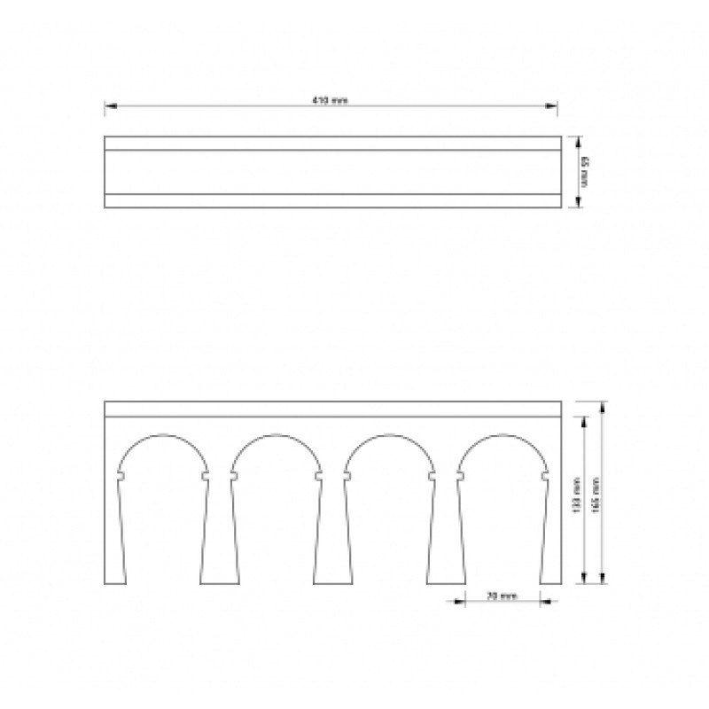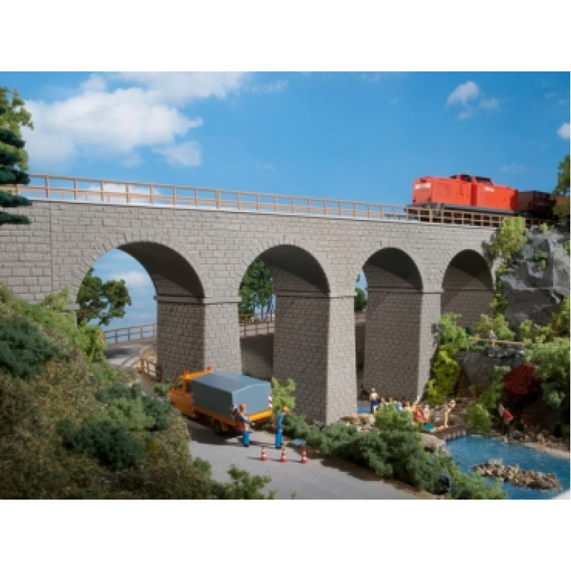 Jednokolejný kamenný most pro přímou kolej, se 3 středními a 2 krajovými pilíři a 4 opěrnými zdmi. Průjezdná výška: 133 mm; šířka mezery mezi pilíři: 70 mm. Rozměry: 410 x 65 x 165 mm.