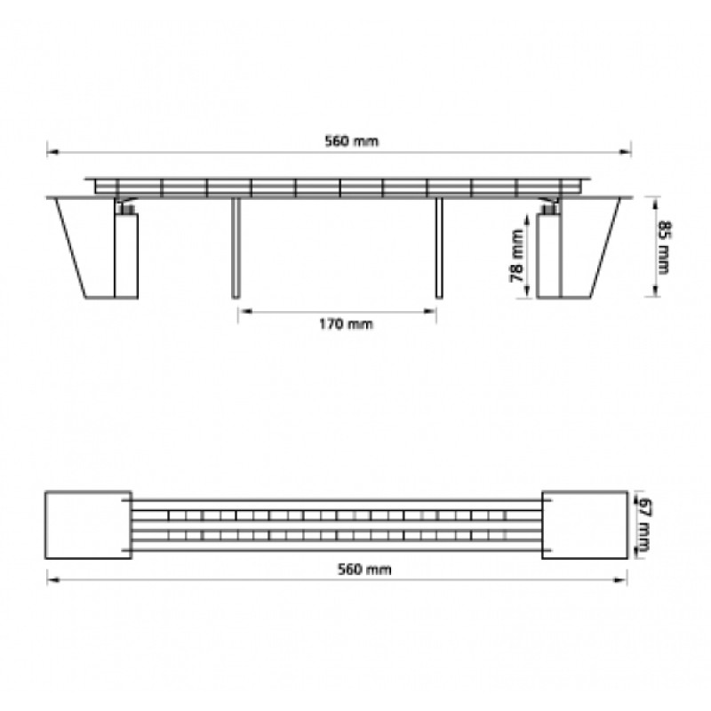 Výška: 78 mm; vzdálenost mezi pilíři: 170 mm.