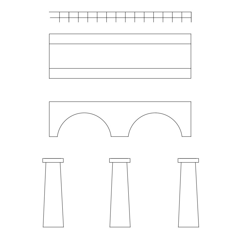 Rozměry každého z pilířů: 60 x 30 x 100 mm.
