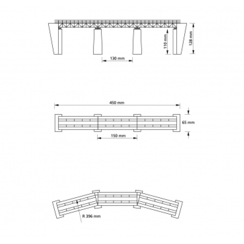 Obsahuje 4 opěrné zdi. Minimální poloměr pro tento most činí 396 mm (R32 a R31 Tillig-Gleis). Lze jej použít i pro přímou kolej. Výšku pilířů je možno upravit. Průjezdná výška: 110 mm; průjezdná šířka mezi pilíři: 130 mm. Rozměry: 450 x 65 x 128 mm.