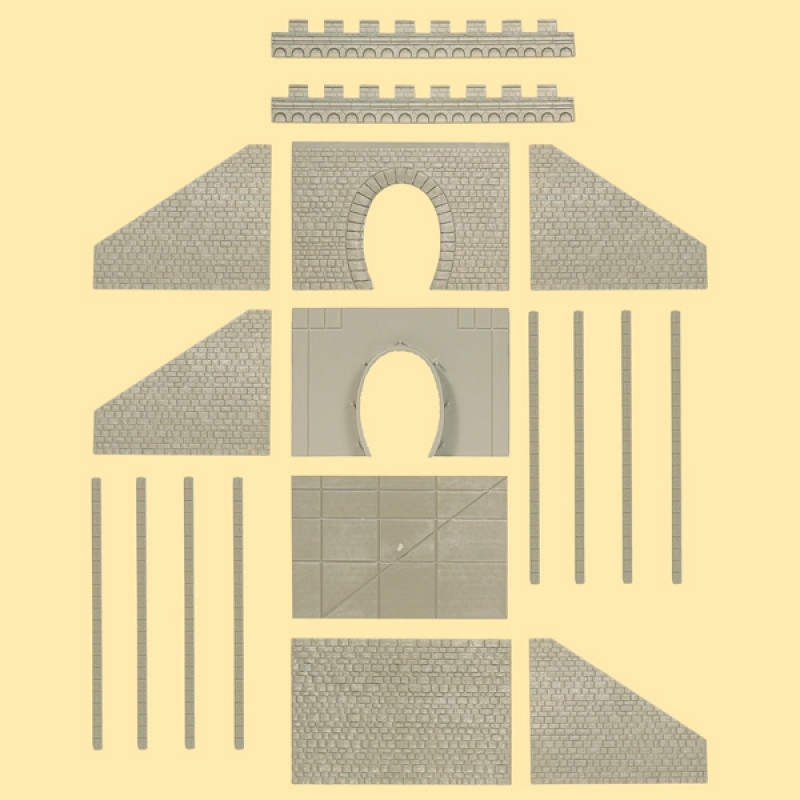 S kamennou římsou a čtyřmi opěrnými zdmi. Pouze pro přímou kolej. Není určen pro elektrifikované tratě.