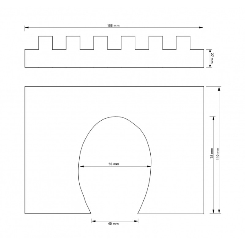 Rozměry bez opěrných zdí: 155 x 137 mm.