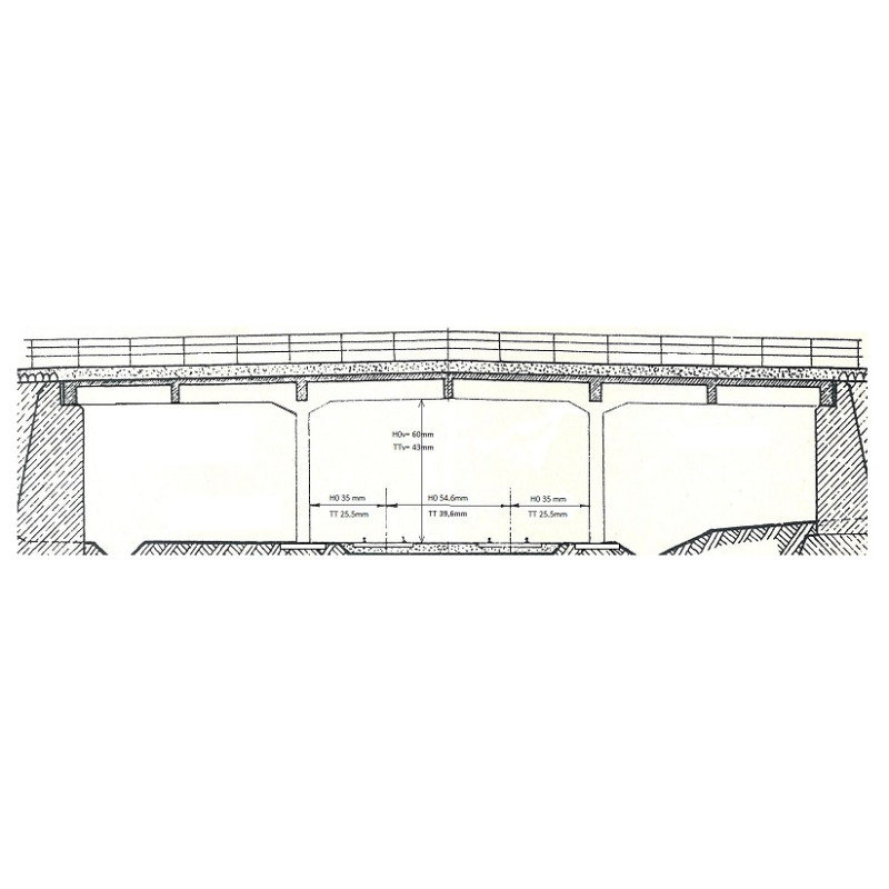 Stavebnice železobetonového mostu zpracovaná technologií laser cut pro pokročilé modeláře. Skutečné mosty tohoto typu najdeme v místech křížení silnice s tratí zejména na rychlostních nebo frekventovaných tratích. Nosné části mostu tvoří typicky 5 hlavních betonových nosníků, navzájem spojených příčníky a usazené v betonových základech. Délka prefabrikovaného mostu je 30,75m most je usazen buď na opěrách z kamenných kvádrů anebo v terénním zásypu. Most byl ponecháván v barvě betonu, občas je k vidění i most povrchově upravený fasádní barvou, většinou šedou. Model jednoho takového mostu lze sestavit z této stavebnice.