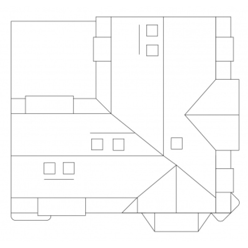 Rohový dům "Irská hospoda". Rozměry: 105 x 95 x 105 mm.