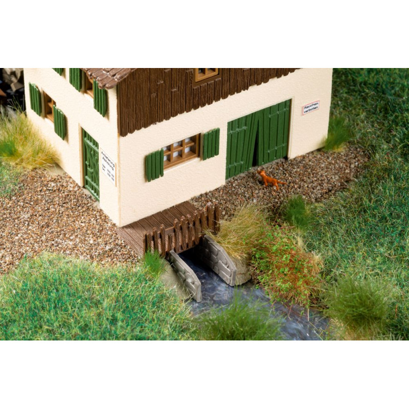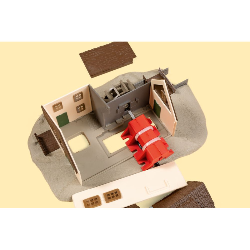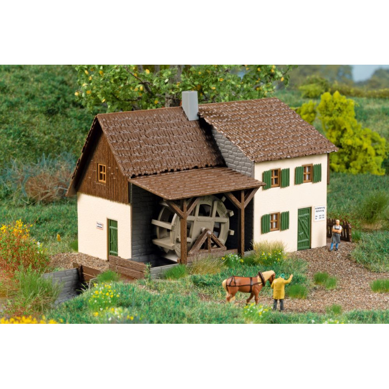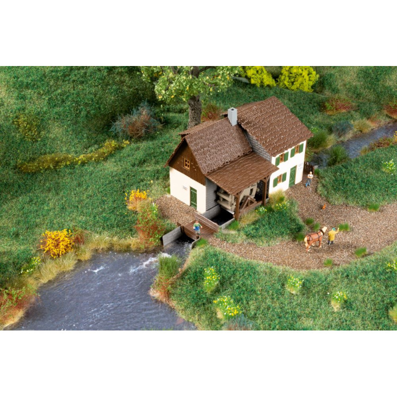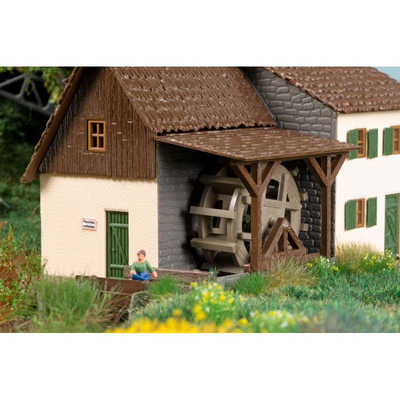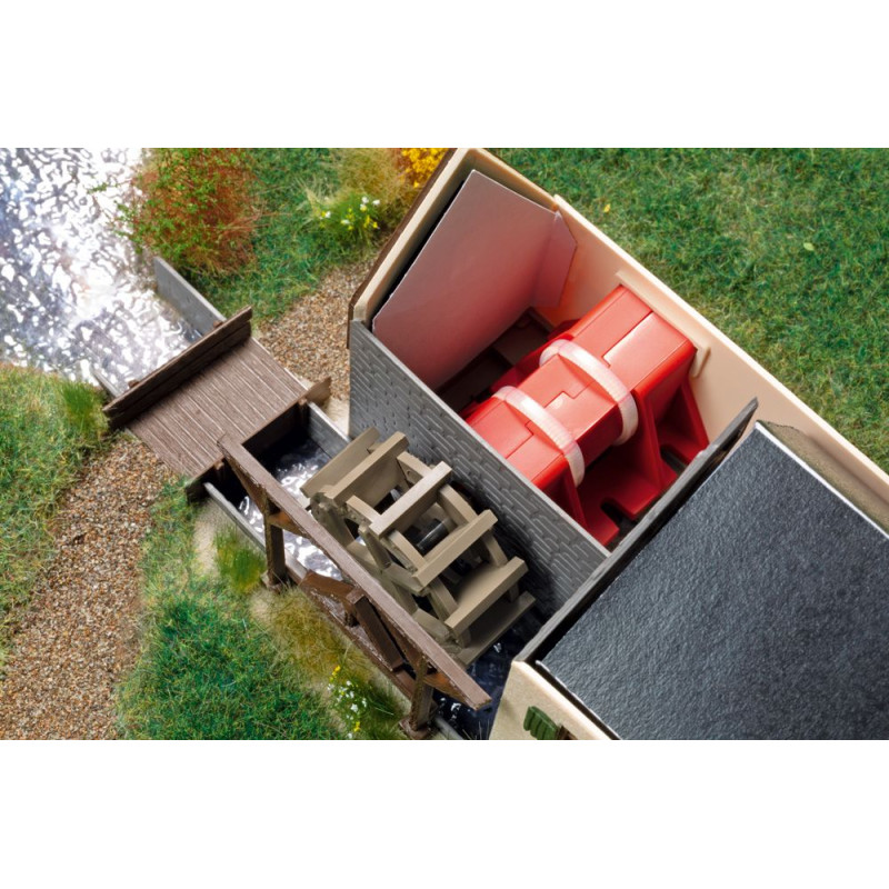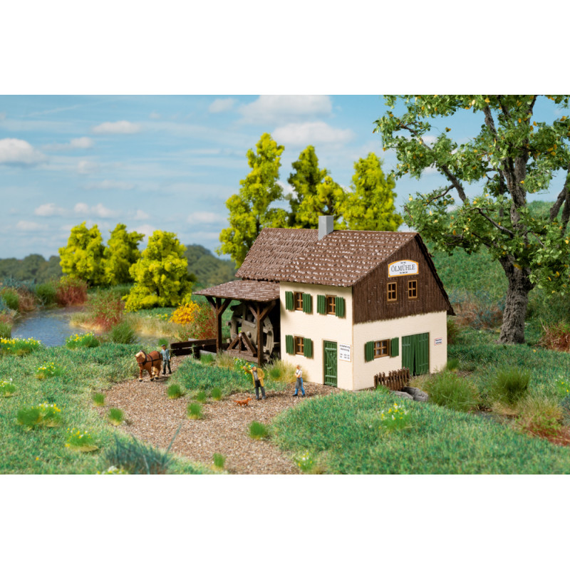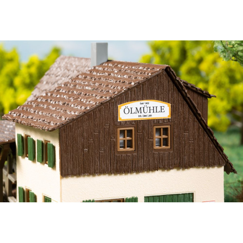 Náš oblíbený model staré lisovny oleje s šindelovou střechou byl přepracován pro instalaci motoru. Pomocí tohoto volitelného rozšíření lze mlýn při stavbě jednoduše vybavit elektricky poháněným vodním kolem.