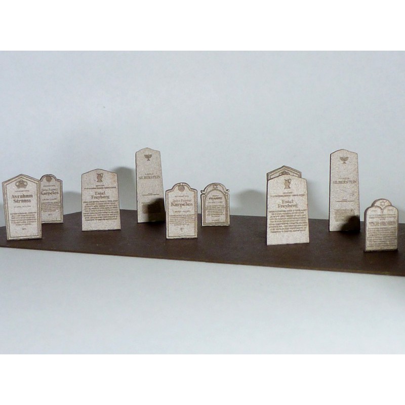 Jedná se o model židovského hřbitova. Typické jsou pro židovské hřbitovy náhrobky (macevot), které mají většinou podobu stély, vzácněji podobu tumby.