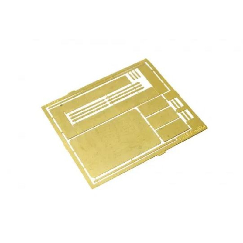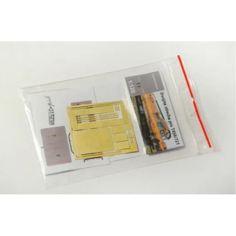 Použití: Díly z aršíku lze vystříhnout nůžkami. Po předohýbání dílů střech na jejich spodní plochu připevníme podkladové lišty, a to pájením či lepením vteřinovým lepidlem. Následně díly dotvarujeme už podle konkrétního modelu, na který je budeme umisťovat a přilepíme sestavy vteřinovým lepidlem.