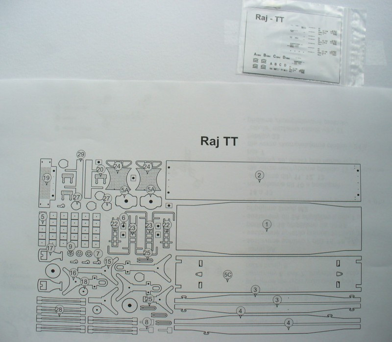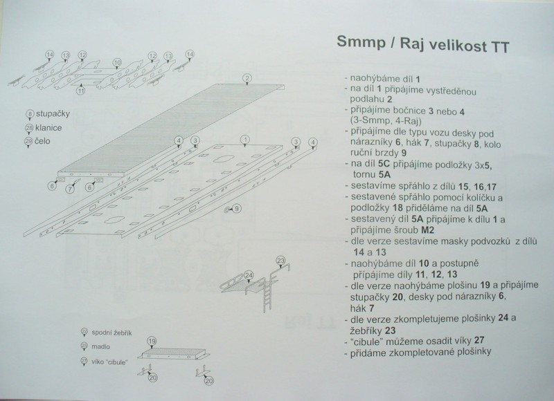 Doplňky vozu Raj (žebříky, rám, rakev, kinematiky, obtisky)-stavebnice z leptu. Nádoby nutno použít ze stavebnice LPH.