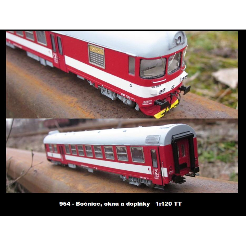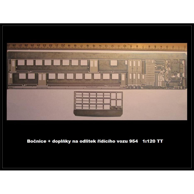 Leptané bočnice pasující na odlitek řady 954 velikosti TT, okna, plná spodní výbava vozu a jiné doplňky. Veškeré dílky jsou navrženy ne dle výkresu, ale dle vlastního měření na skutečném voze. Cena včetně oken.