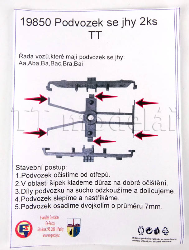 Pensylvánský podvozek se jhy, 2 kusy, TT, ES Pečky 19850 Pensylvánský podvozek se jhy, 2 kusy, TT, ES Pečky 19850
