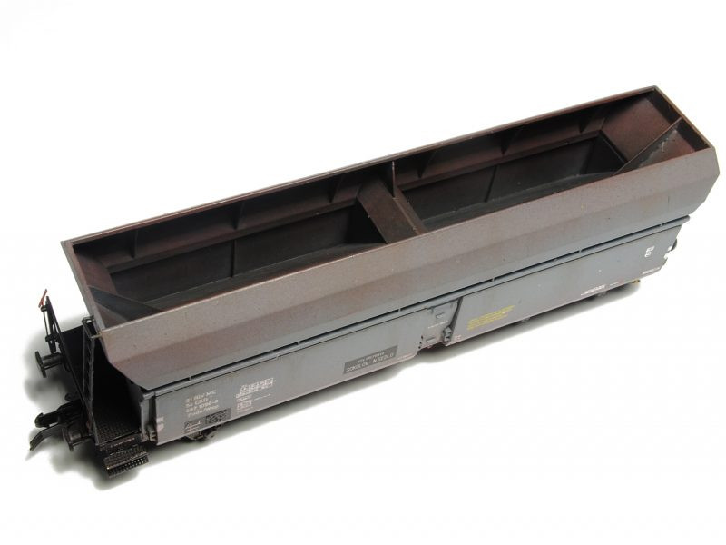 Kompletní stavebnice samovýsypného vozu. Obsahuje probarvené plastikové výlisky na sestavení modelu včetně kinematik, spřáhel a dvojkolí, kovové lepty, závaží a obtisky. Provozovatel Československé dráhy, IV. epocha.