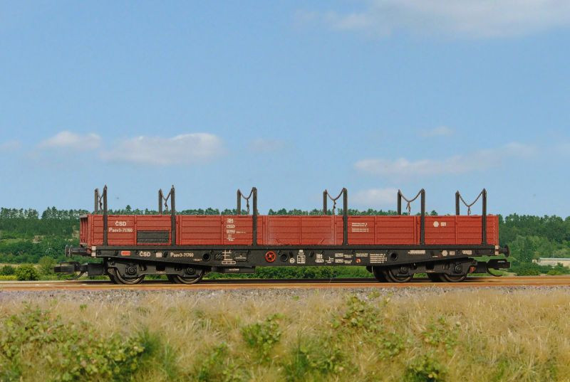 Kompletní stavebnice vysokostěnného vozu Paov 10 – dřevěné stěny. Obsahuje plastikové výlisky na sestavení modelu včetně kinematik, spřáhel a kvalitních soustružených kovových dvojkolí, kovové lepty, závaží a obtisky. Provozovatel ČSD, III. epocha.