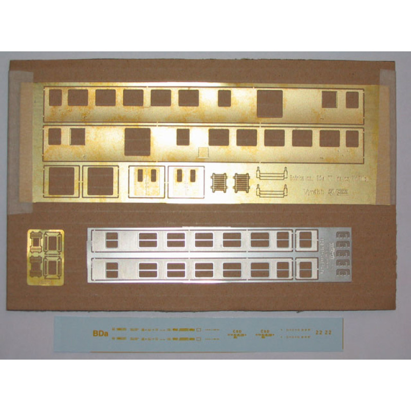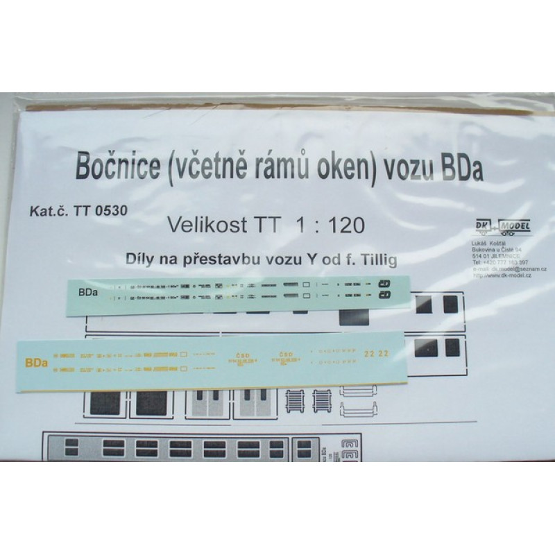 Díly na přestavbu "STARÉHO" vozu Y od f. Tillig z původních forem Zeuke/BTTB. Stavebnice obsahuje bočnice, stříbrné rámy oken, výhledové okno a další drobné doplňky vozu, obtisk s popisem.