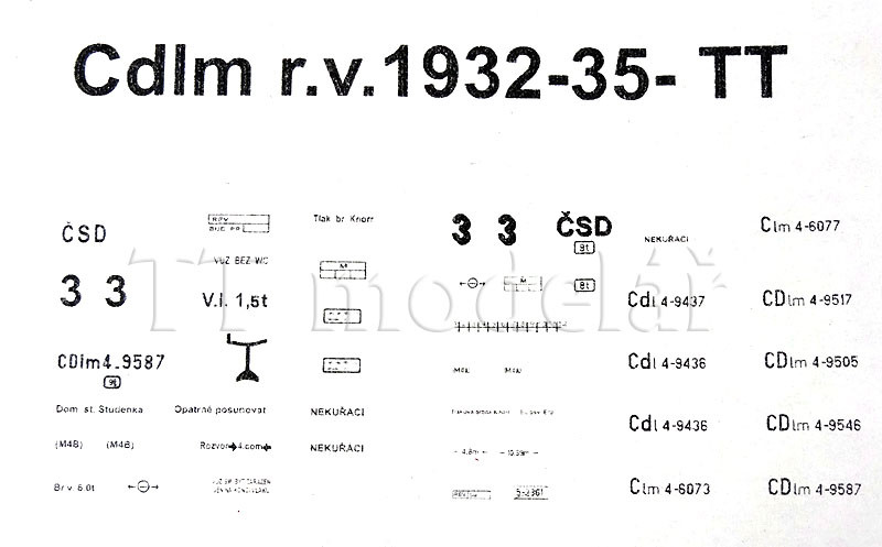 Stavebnice přívěsných vozů Clm r. v. 1932, CDlm r. v. 1932 a CDlm r. v. 1935.