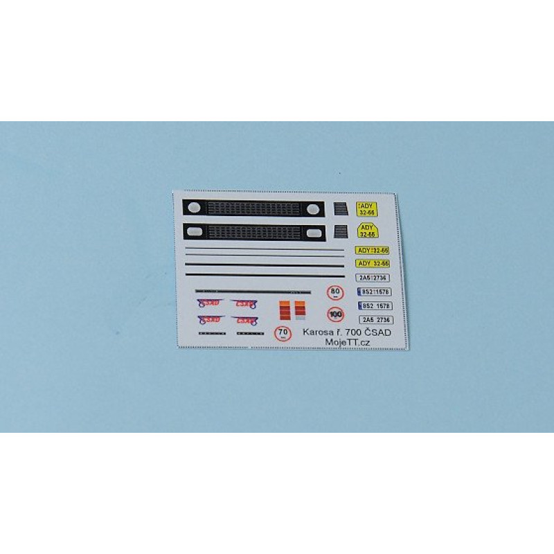 Obtisková sada modrých pruhů pro linkovou Karosu C734 v provedení ČSAD: Lze použít od epochy IV až po epochu VI. Obsahuje vše potřebné pro obtisknutí bíle nastříkaného modelu včetně obtisku na nárazníky. Po osazení obtisků je vhodné černou barvou natřít gumy na předním a zadním nárazníku a výfuk. Pod přední SPZ je třeba vytvořit opět bílý podklad (například natřít bílou barvou po obtisknutí modrého nárazníku).