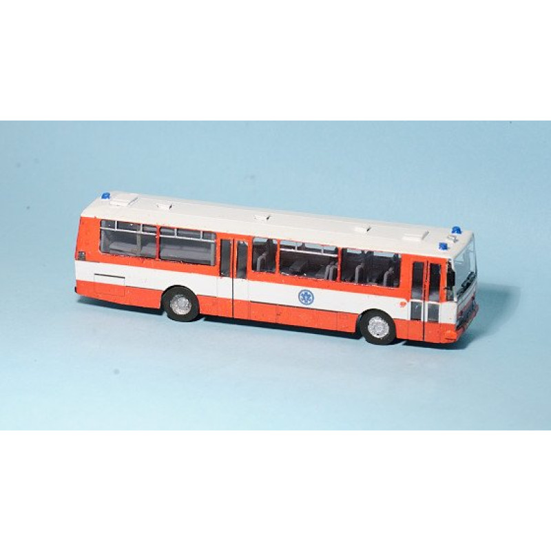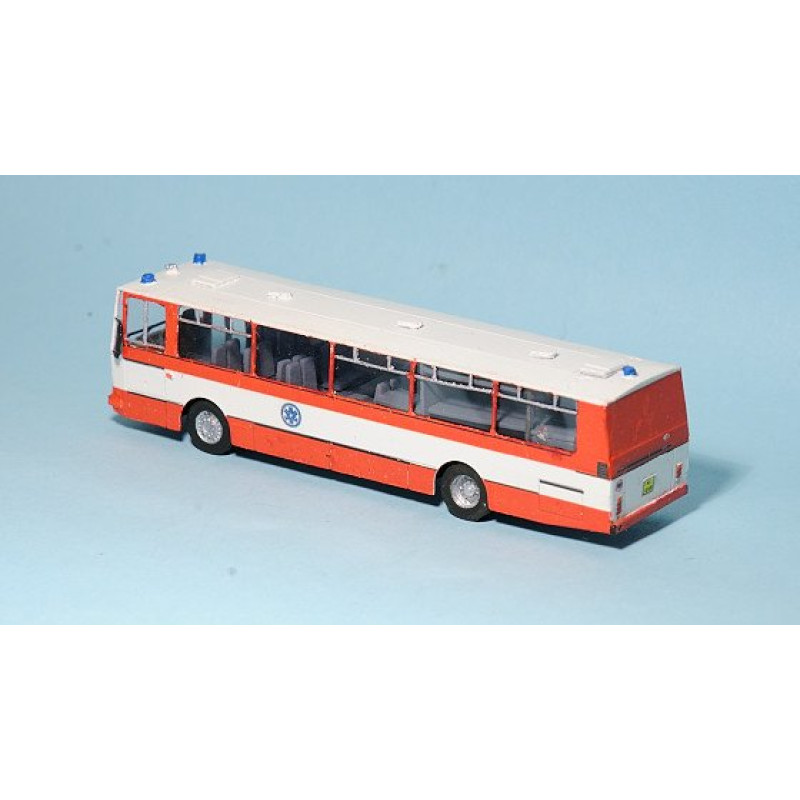 Historie: Úprav na hasičscké speciály existuje větší množství, od prostého hasičského nátěru a osazení majáků na střechu, až po úpravu představující tuto stavebnici. Úprava spočívá v zaplechování zadního okna, osazení majáků na střechu a čelo a v jiném provedení interiéru – v přední části slouží autobus pro přepravu sedících (pohodlnější dálkové sedačky + stolky), v zadní části je vůz vybaven kuchyňkou, skříňkami a 4 postelemi (2×2 nad sebou) pro nouzové ubytování hasičů. Konkrétní předloha byla v provozu u hasičů ČD.