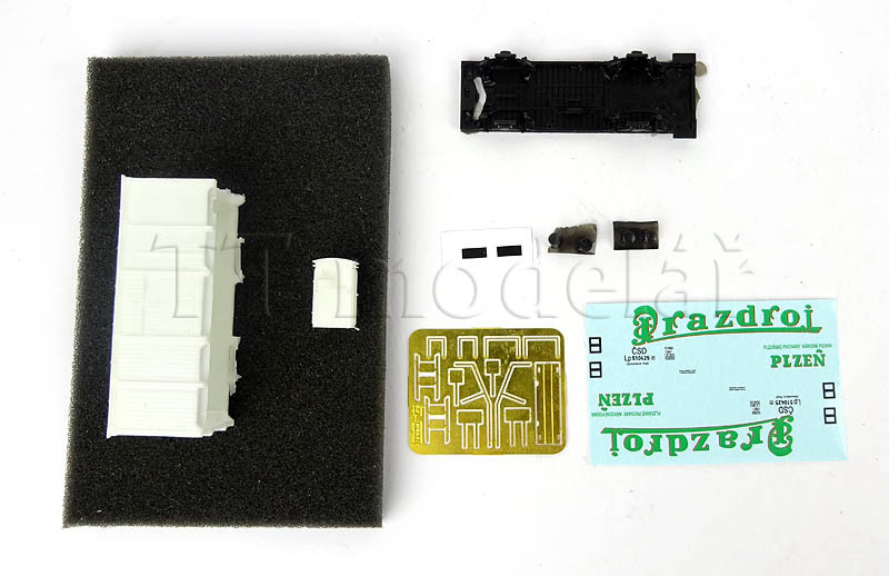 Obsahuje odlitek skříně, brzdařské budky a spodku vozu, doplňky z lept a obtisk s modelově věrným popisem Prazdroj - Plzeňské pivovary národní podnik Plzeň.