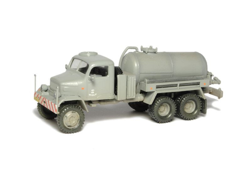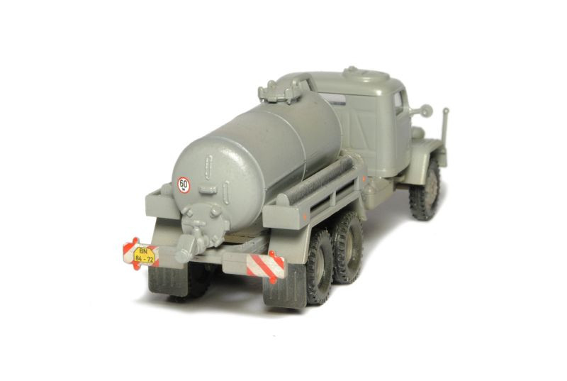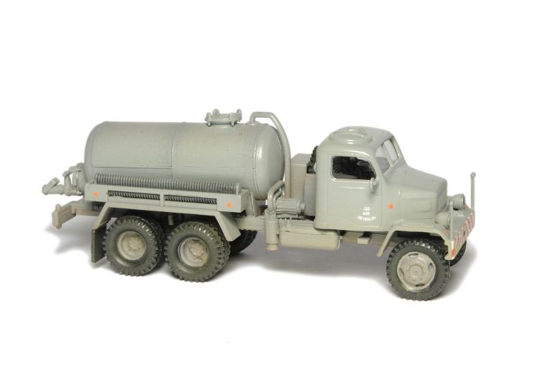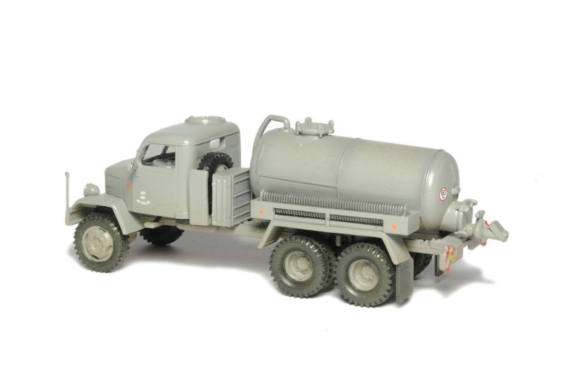 Kompletní plastiková stavebnice fekálního automobilu. Obsahuje probarvené plastikové výlisky na sestavení modelu, kovové osičky a sadu obtisků.