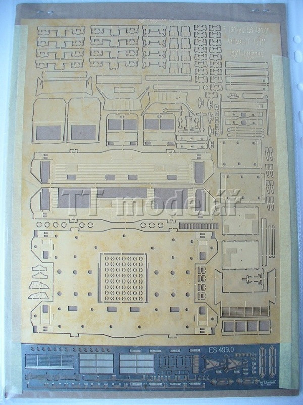 Stavebnice obsahuje díly skříně lokomotivy, masek podvozků a sběračů z leptaného plechu (bez pružinky) a obtisk s popisem.