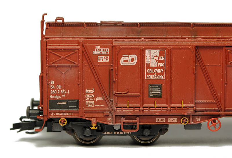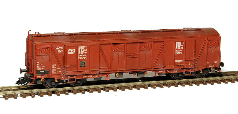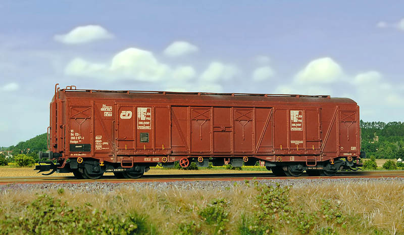 Kompletní stavebnice krytého vozu na přepravu obilovin s výsypkami v podlaze vyráběného ve vagonce Česká Lípa. Obsahuje plastikové výlisky na sestavení modelu včetně kinematik, spřáhel, dvojkolí, kovové lepty, závaží a obtisky. Obtisky nabízí možnost volby provozního čísla a loga dopravců ČD, ČD cargo, V.-VI. epocha.