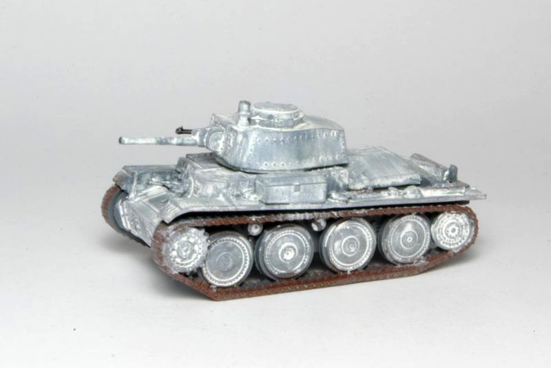 Kompletní plastiková stavebnice lehkého tanku. Obsahuje probarvené plastikové výlisky na sestavení modelu a sadu obtisků.