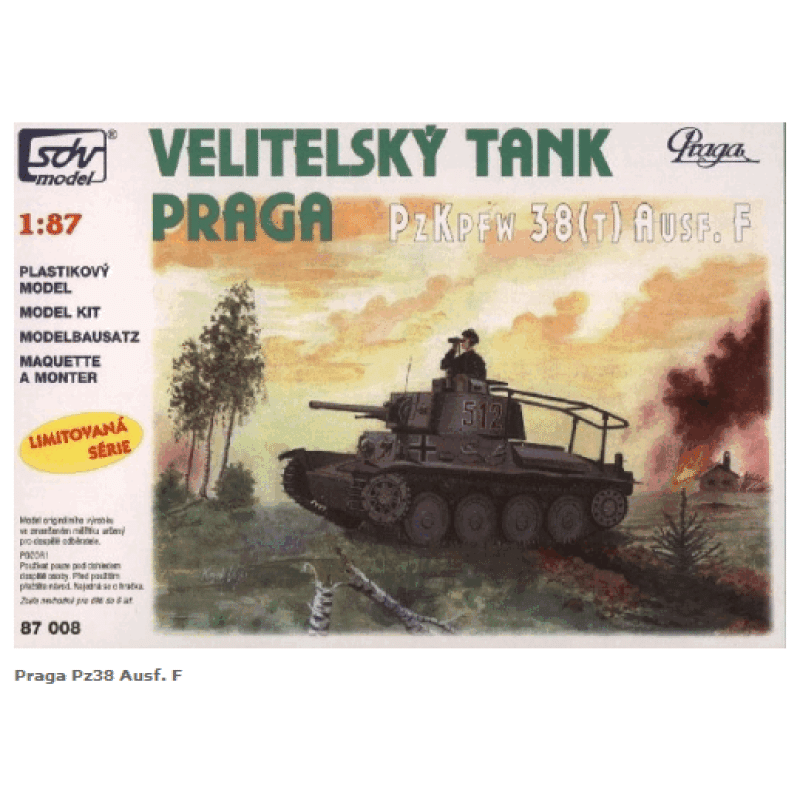 Stavebnice lehkého tanku Praga Pz38 Ausf. F, H0, SDV 87008