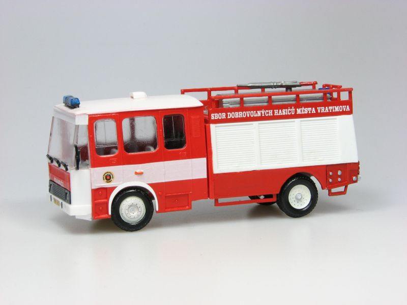 Hasičský speciál SDH Vratimov. Stavebnice obsahuje probarvené výlisky na sestavení modelu, majáky a sadu obtisků. Od 23.9.2015 je stavebnice dodávána s novými koly, novými disky a kovovými osičkami.