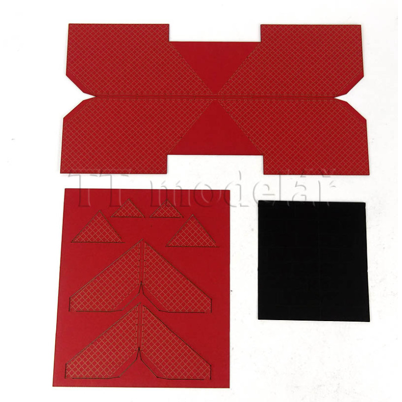 Laser cut stavebnice, rozměry 300 x 130 x 110 mm.
