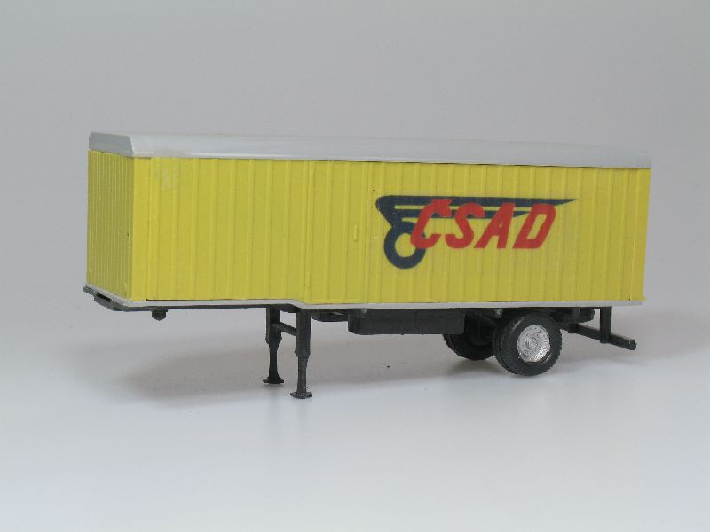 Stěhovací návěs ČSAD. Stavebnice obsahuje probarvené plastikové díly a obtisky. Nově také nové kola, disky a kovovou osičku.