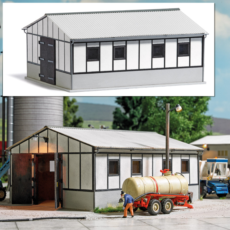 Tento typ haly původně vyráběla společnost VEB Vereinigte Holzindustrie Marienberg od poloviny 60. let. Dřevostavba se používá jako skladovací prostor a úkryt pro zemědělskou techniku či také jako třídírna ovcí, brambor, atd. V modelu jsou okenní rámy a dveře vyrobeny ze skutečného dřeva. Vrata jsou vybavena filigránovými závěsy pro možnost otvírání. Okna jsou na delšch stěnách budovy. Díly jsou barvené.