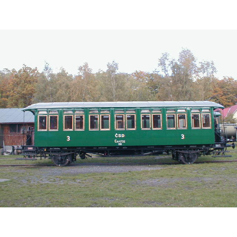 Stavebnice vozu z leptaného plechu a obtisk s popisem (Ci4-1732 odpovídá vozu s WC, Ci4-1701 odpovídá vozu bez WC, rozvor 7,6m).
