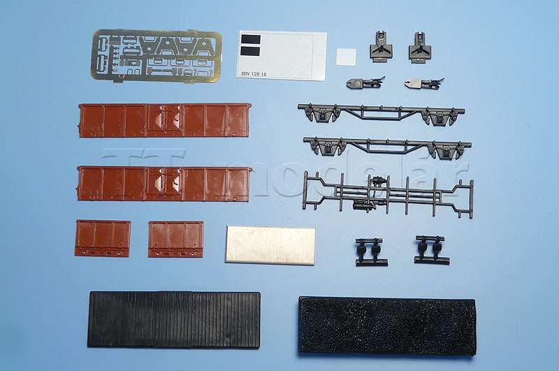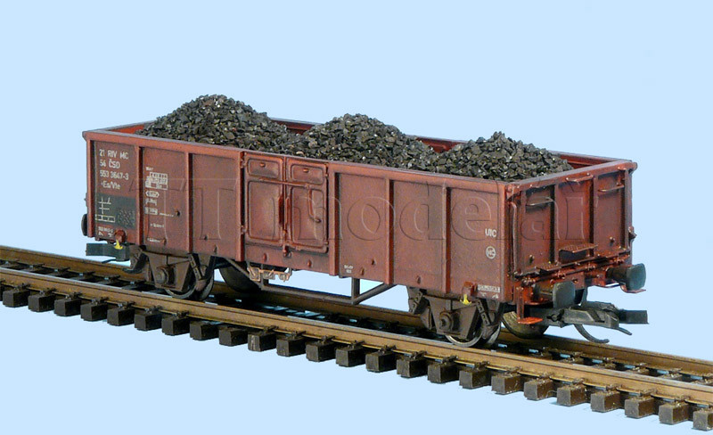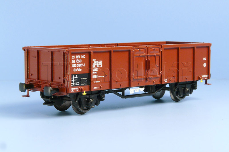Obsahuje plastový výlisek, kovové lepty, dvojkolí, plastikové výlisky kinematik, výlisek nákladu uhlí, spřáhla a obtiskové aršíky. Konečně přesná stavebnice nejrozšířenějšího československého vozu Es, tedy provedení s bočnicemi spuštěnými až pod rám. Velmi dobré je i vnitřní gravírování ve voze. Vůz má řadu detailů, které ho řadí mezi špičkově provedené stavbnice. Provozovatel: ČSD, IV. epocha.
