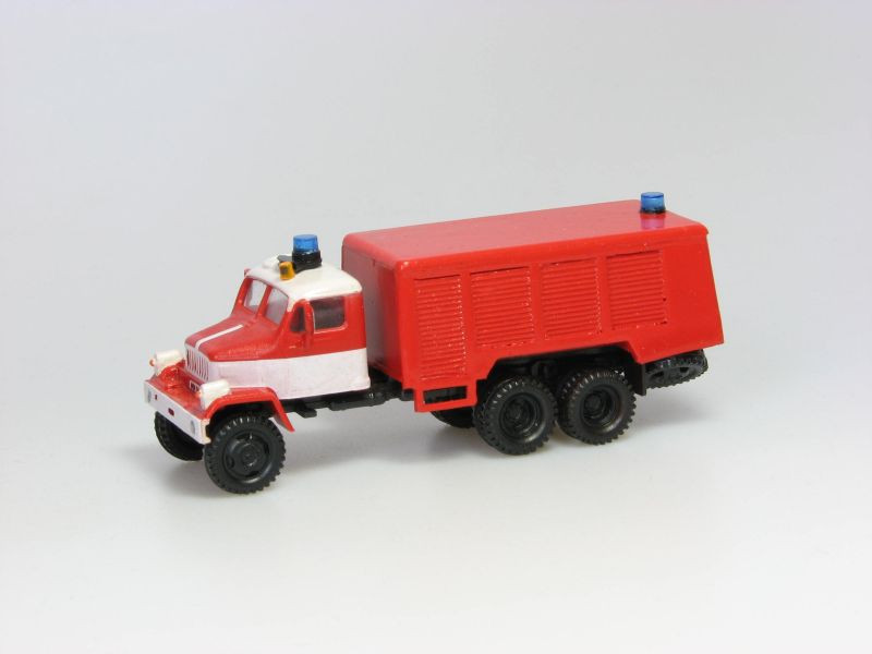 Pěnový hasičský automobil. Stavebnice obsahuje plastikové výlisky, majáky, sadu SPZ, sadu obtisků a nově také kovové osičky.
