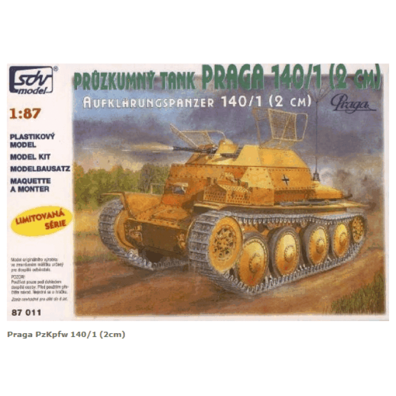 Stavebnice průzkumného tanku Praga PzKpfw 140/1 (2 cm), H0, SDV 87011