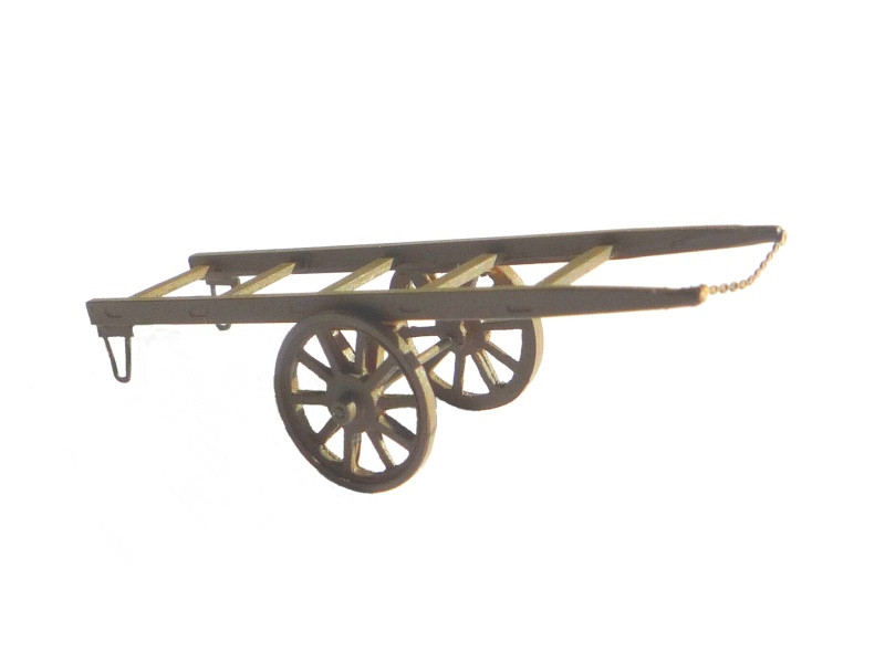 Stavebnice káry, která se dřív používala na nádražích, ale i jinde na převoz různého zboží a materiálu. Obsahuje odlitky a jemné lepty. Je proto určena zručným modelářům. Barevné provedení - zašlé dřevo