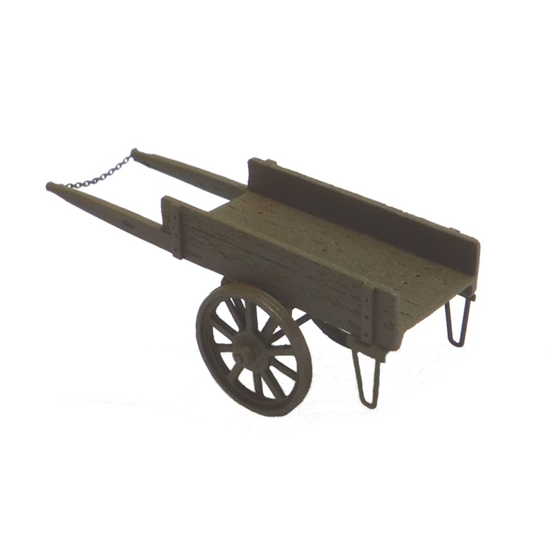 Stavebnice káry, která se dřív používala na nádražích, ale i jinde na převoz různého zboží a materiálu. Obsahuje odlitky a jemné lepty. Je proto určena zručným modelářům. Barevné provedení - zašlé dřevo