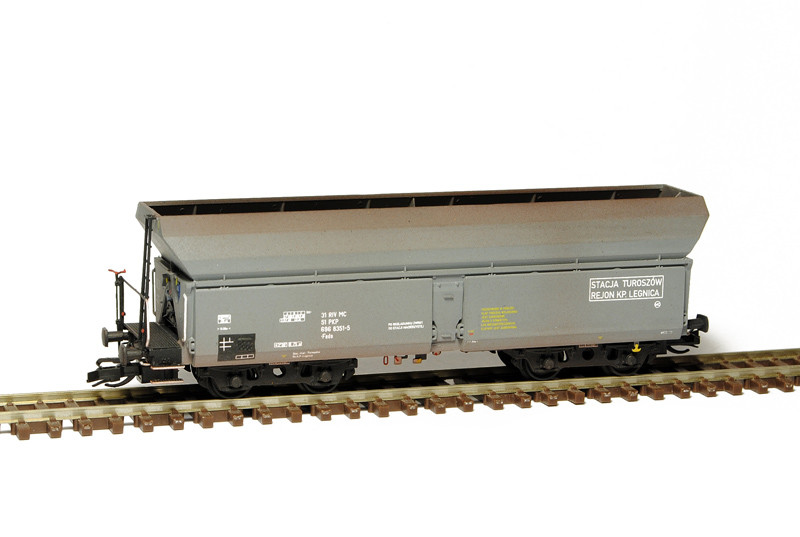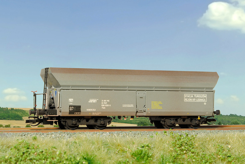 Kompletní stavebnice samovýsypného vozu. Obsahuje probarvené plastikové výlisky na sestavení modelu včetně kinematik, spřáhel a dvojkolí, kovové lepty, závaží a obtisky. Provozovatel PKP, IV. epocha.