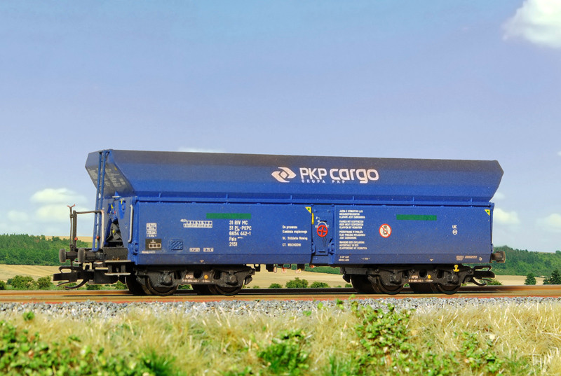 Kompletní stavebnice samovýsypného vozu. Obsahuje probarvené plastikové výlisky na sestavení modelu včetně kinematik, spřáhel a dvojkolí, kovové lepty, závaží a obtisky. Provozovatel PKP-C, VI. epocha.