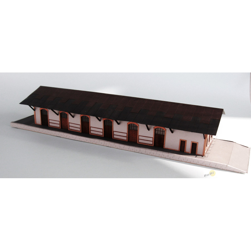 Stavebnice skladiště Glarus vyrobená technologií Laser-Cut. Základem je lepenka, na kterou se lepí probarvený karton a díly ze dřeva. Počet dílů je 89. Model je dodáván jako stavebnice a její sestavení trvá cca 4 hodiny.