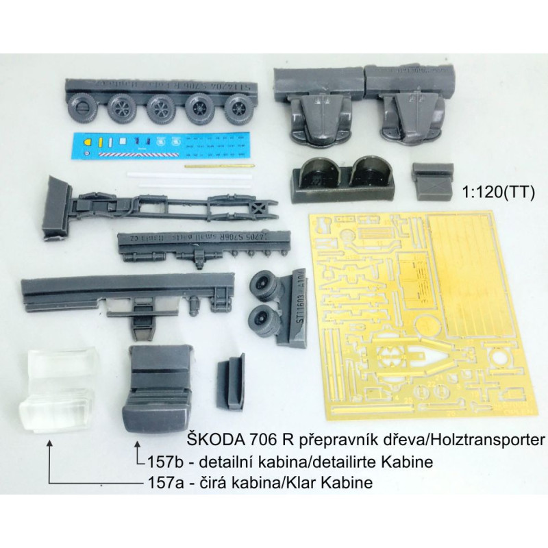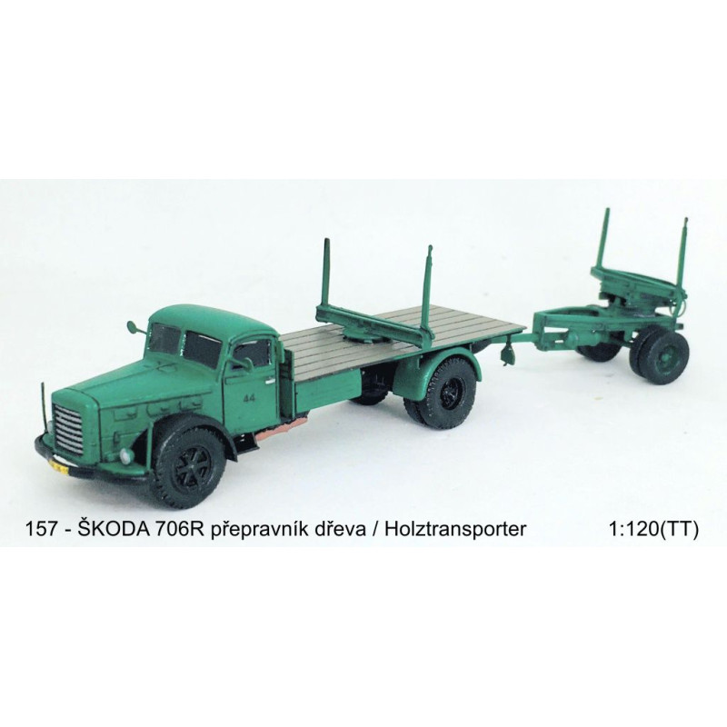 Stavebnice - Škoda 706 R + vlek DAV5, přepravník dřeva, čirá kabina, TT, Štěpnička 157a