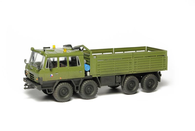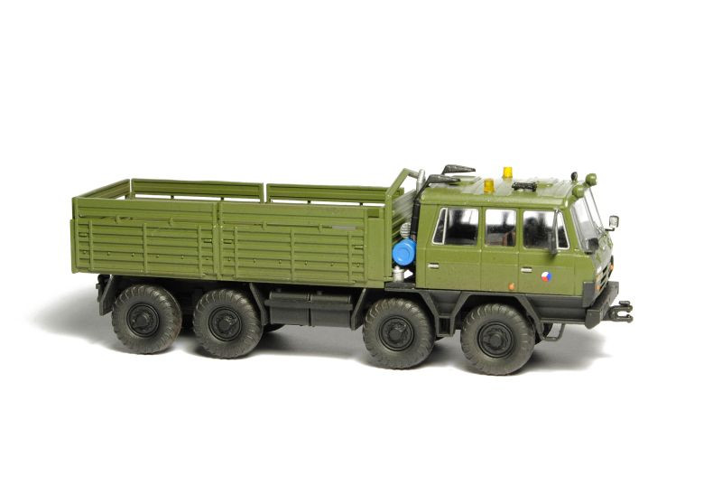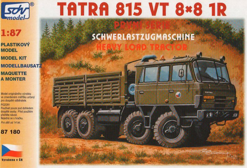 Kompletní plastiková stavebnice těžkého tahače. Obsahuje probarvené plastikové výlisky na sestavení modelu, majáky, kovové osičky, leptané doplňky a sadu obtisků.