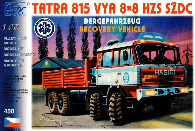 Kompletní plastiková stavebnice vyprošťovacího automobilu HZS SŽDC. Obsahuje probarvené plastikové výlisky na sestavení modelu, majáky, kovové osičky, leptané doplňky a sadu obtisků.