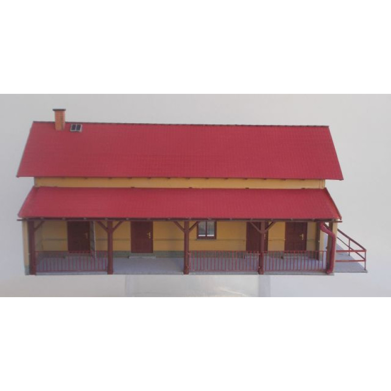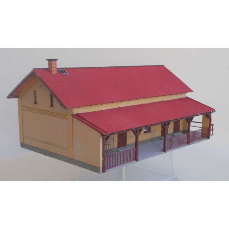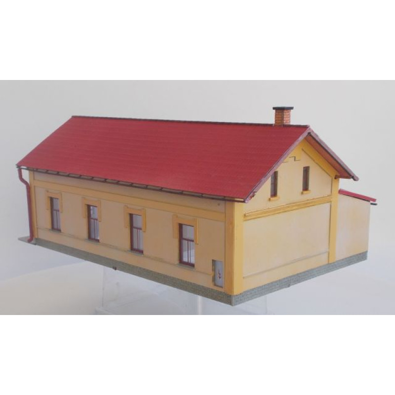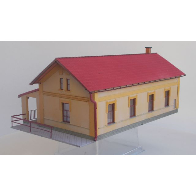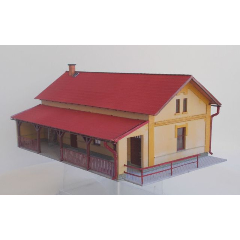 Stavebnice Laser-cut výpravní budovy "Staré Město pod Sněžníkem". Budova byla v 07/2016 "rekonstruována" ubouráním obytného křídla a následně revitalizací zbytku budovy do současné podoby.